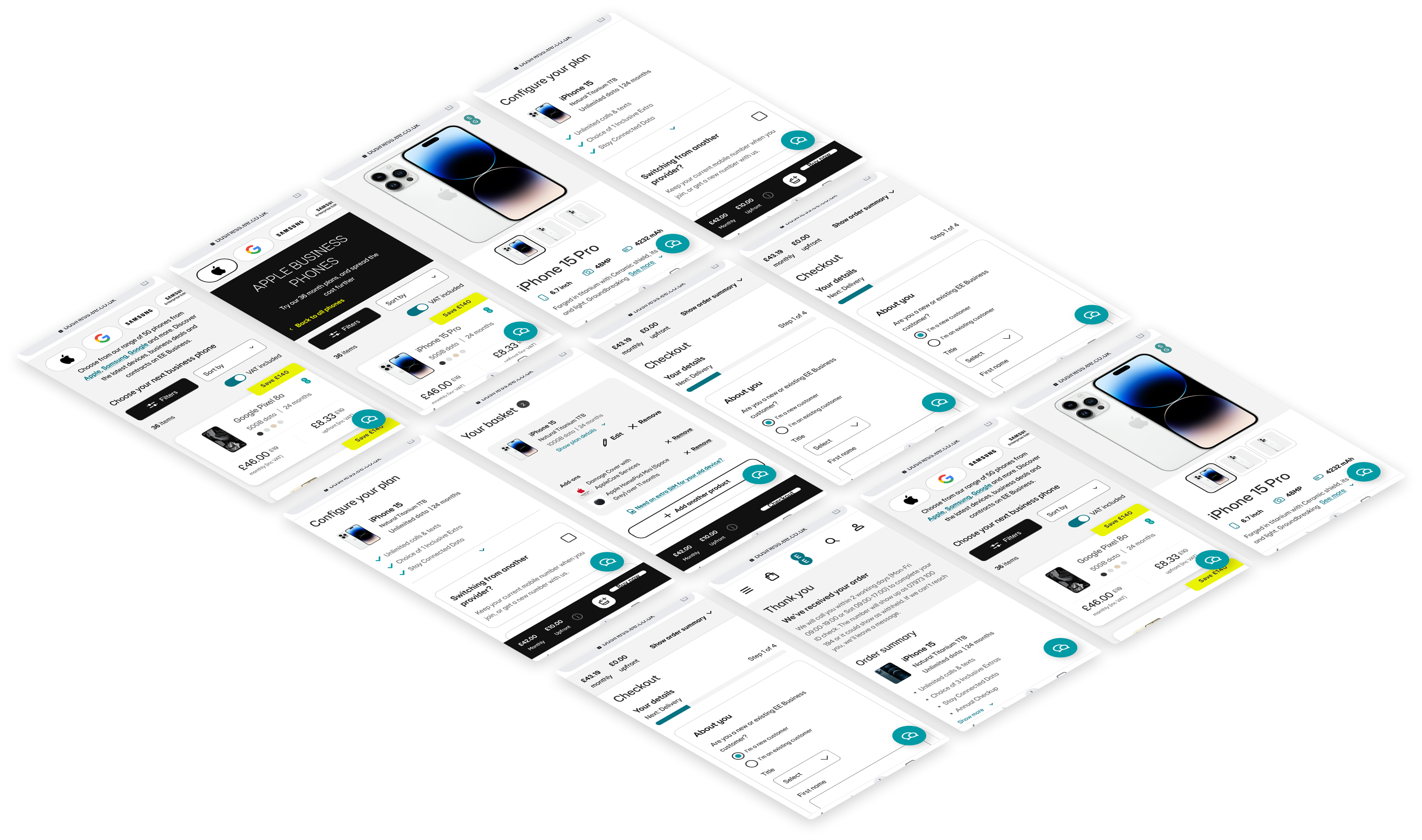 The EE Business Shop was to undergo a migration from its legacy to CMS to a custom CMS, for strategic reasons. During this time, as a product design team we had a limited time-window to conduct and extract existing research to produce a new optimised journey that would lead to improved order conversion. This involved an intensive process of discovery, ideation and testing with strategic thinking in order to execute an improved journey in such a limited timeframe.